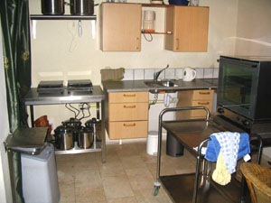 Naast veel kleine keukens is er een professionele groepskeuken mét o.a. vaatwassers, grote oven, 3 grote inductieplaten, 4-pits keramische plaat en meer dan voldoende servies en pannen.